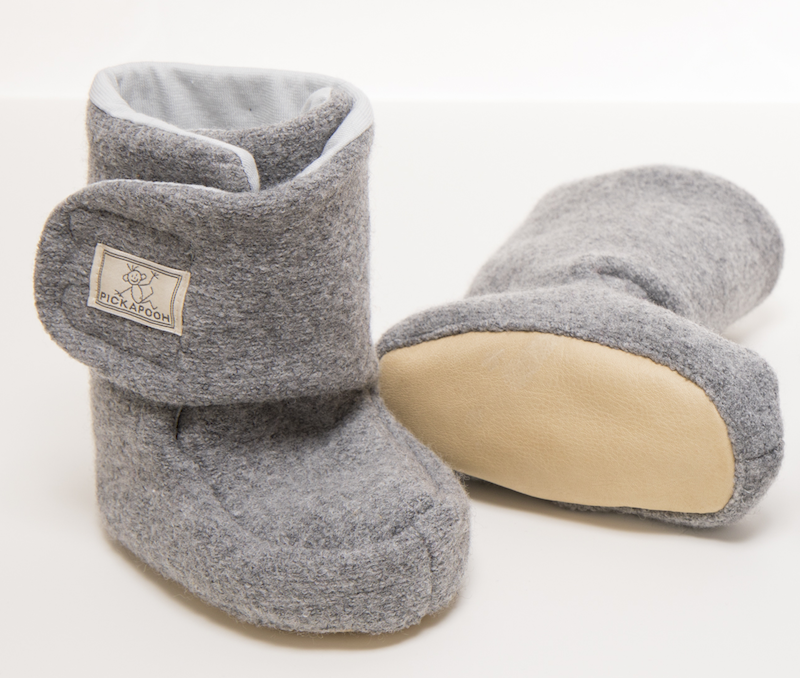100% Wollwalk, GOTS-zertifiziert (in Grösse 3 Sohle aus Leder)