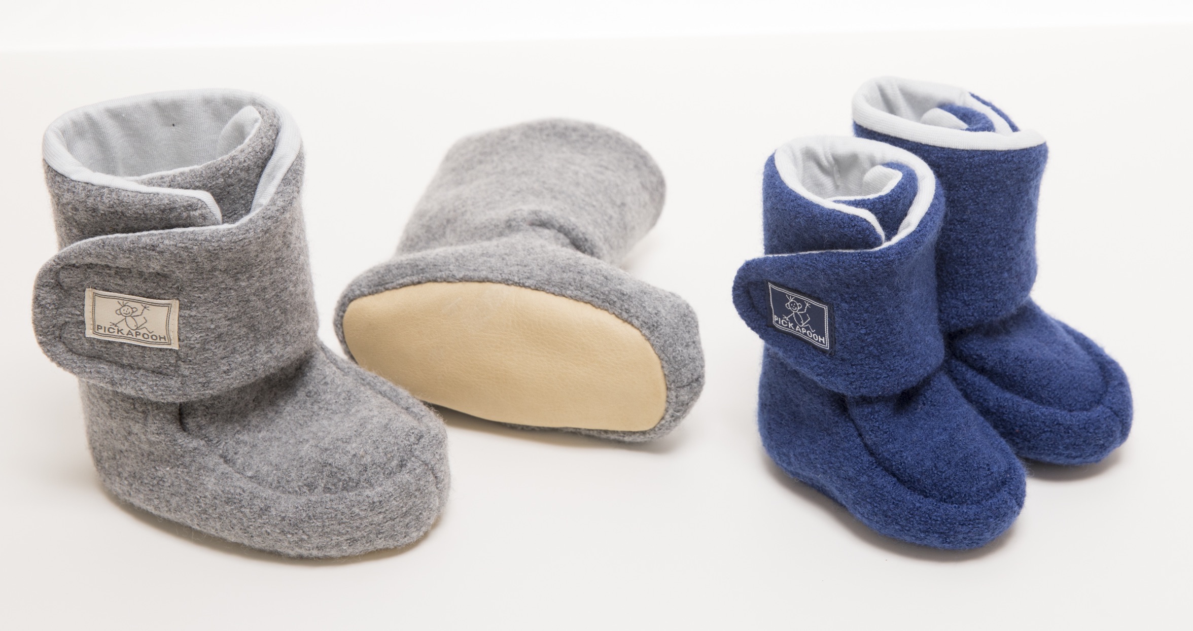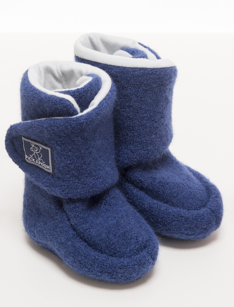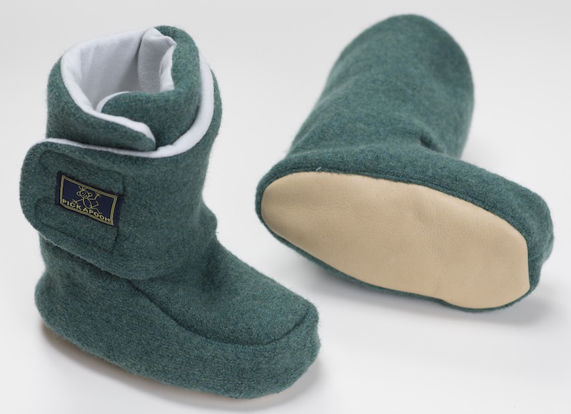 Mit diesen "Tretern" von Pickapooh haben die Kleinen warme Füsschen - dank höherem Schaft, der sich aber komplett nach unten klappen lässt für unkompliziertes An- und Ausziehen. Geschlossen werden die Stiefelchen mit einem Klettverschluss. Erhältlich in drei Grössen. In Grösse 3 mit Ledersohle.