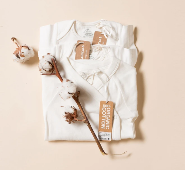 Little Green Radicals verwendet ausschliesslich Bio-Baumwolle und produziert fair in Indien. Erhältlich in den Grössen 0-3 Monate bis 6-9 Monate.
