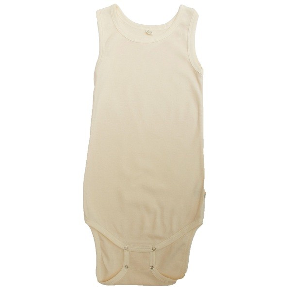 Ärmelloser Body aus 70% Wolle und 30% Seide aus kontrolliert biologischer Tierhaltung bzw. ökozertifizierten Betrieben.
