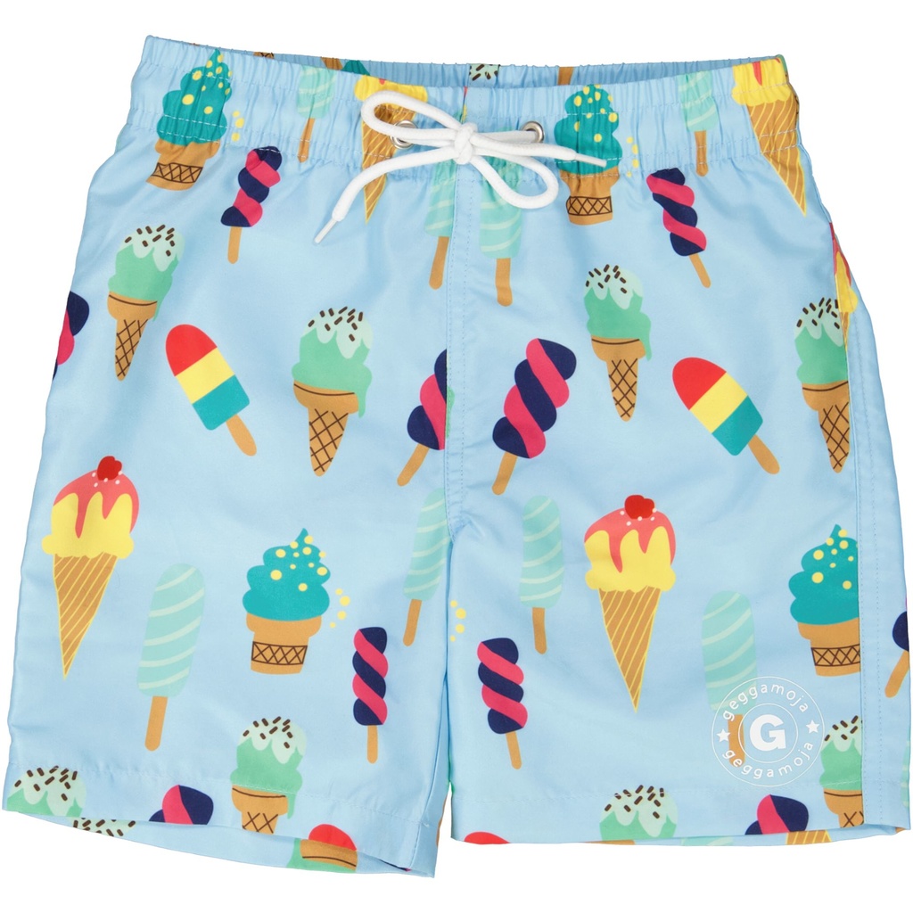 Schwimm-Shorts von Geggamoja, mit UV 50+ , blockt 98% der UVA- und UVB-Strahlen der Sonne. Erhältlich in den Grössen 86/92 bis 146/152. Dazu passend gibt es