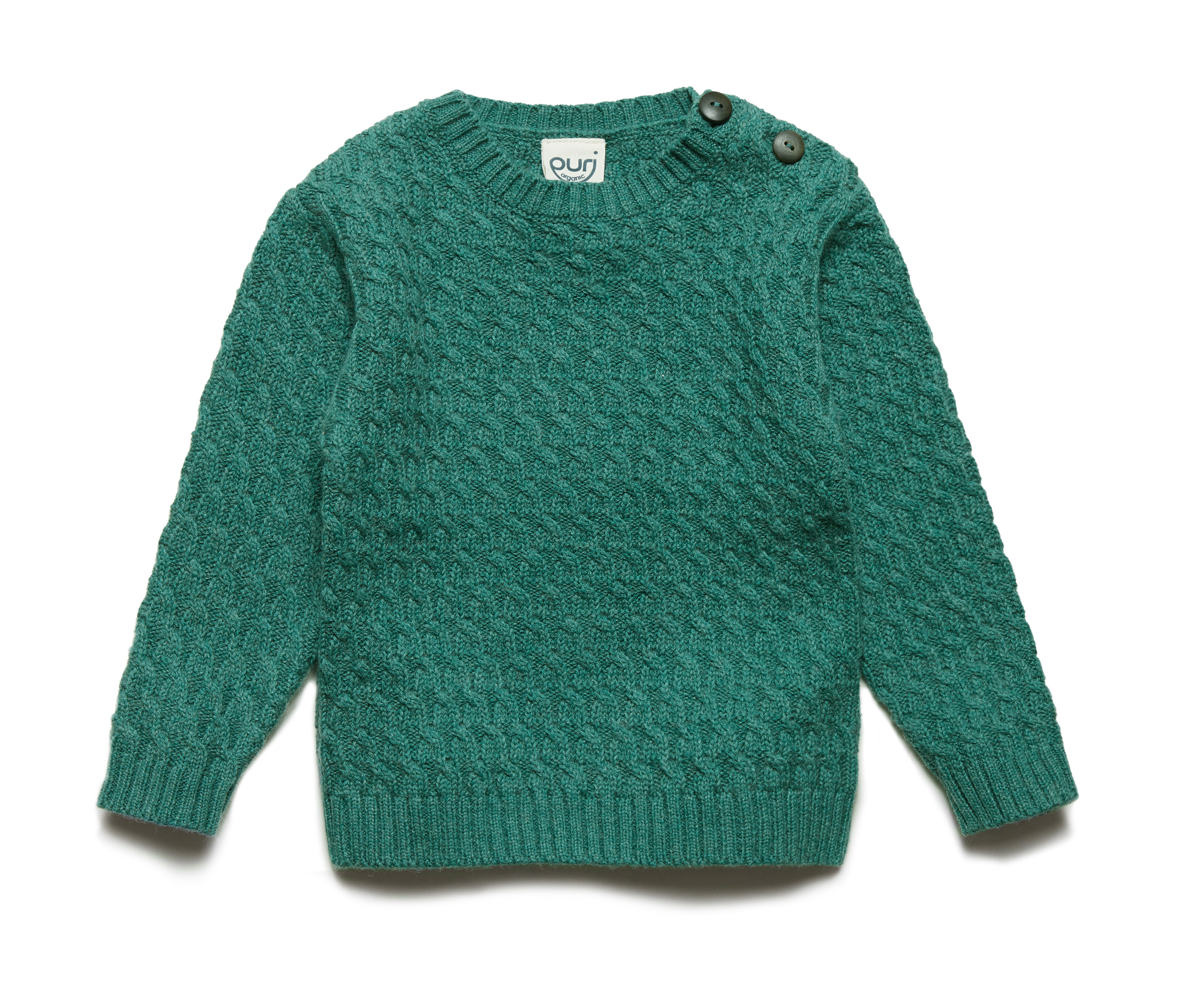 Weicher Baumwoll-Woll-Pullover, gestrickt, mit schöner Struktur, von "puri organic" (designt in Deutschland, fair produziert in Indien, GOTS-zertifiziert), aus 80% Bio-Baumwolle und 20% Wolle.