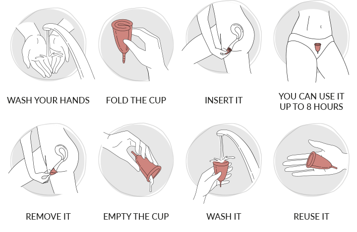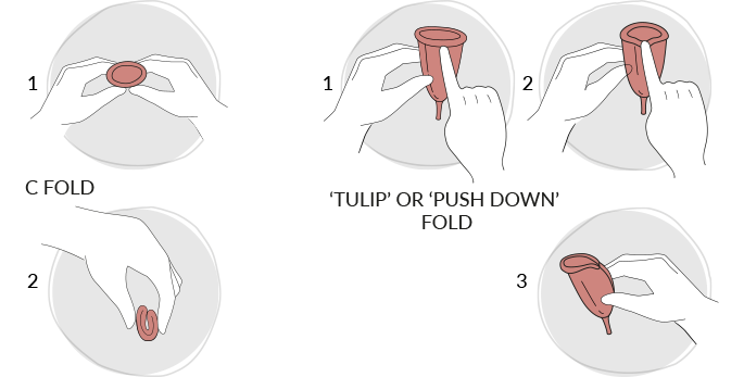Anwendung: Mittels "C-Fold" oder "Tulpe" falten, einführen, aufploppen lassen und nach 4-8 Stunden entfernen, ausleeren, ausspülen und wieder einsetzen. Siehe auch Instruktionsbilder. Bei Fragen dürft ihr euch ungeniert