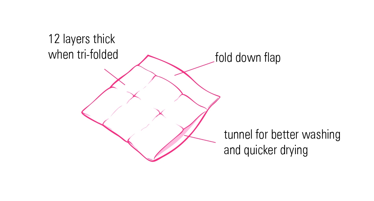 Geniales Tunnel-Design für gründliche Reinigung und schnelleres Trocknen. Hanf-Jersey ist angenehm weich und sehr saugfähig. Dieser Material-Mix saugt 25% mehr als eine reine Baumwoll-Prefold des gleichen Gewichts oder anders ausgedrückt: Die Hanf-Baumwoll-Prefolds machen ein schmaleres Windel-Paket trotz hoher Saugkraft.