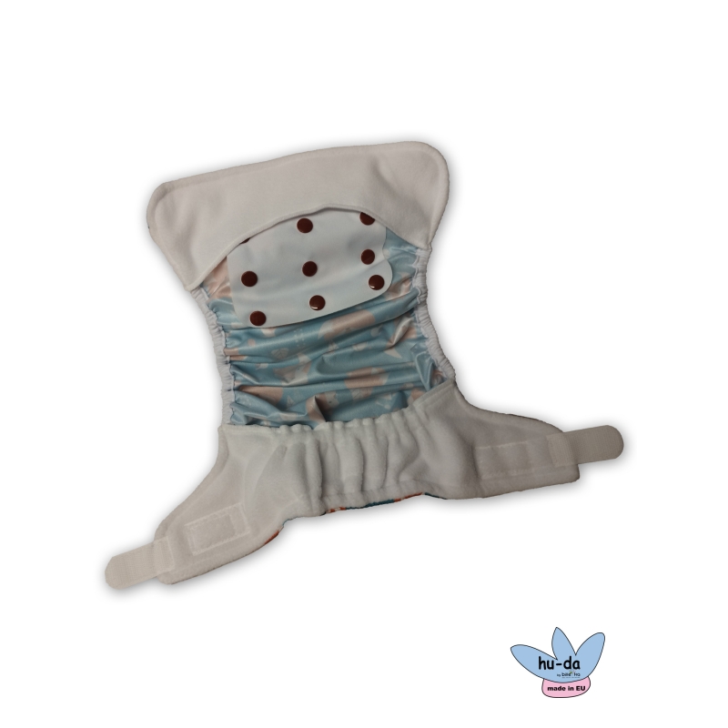 Neues, durchdachtes Mikrofaser-Überhöschen von Hu-da / Billeka! Die Überhose hat innen Laschen, die eine Prefold gut in Position halten. Der Schnitt passt aber auch über unsere hu-da One-Size-Höschenwindeln (ein Manko vieler anderer "Prefold-Überhöschen", die oft über Höschenwindeln nicht sauber abschliessen). Extra weiche Bündchen an Rücken und Beinchen. Innen halten "Taschen" aus Fleece die Einlagen. Diese sind zusätzlich mit PUL unterlegt.